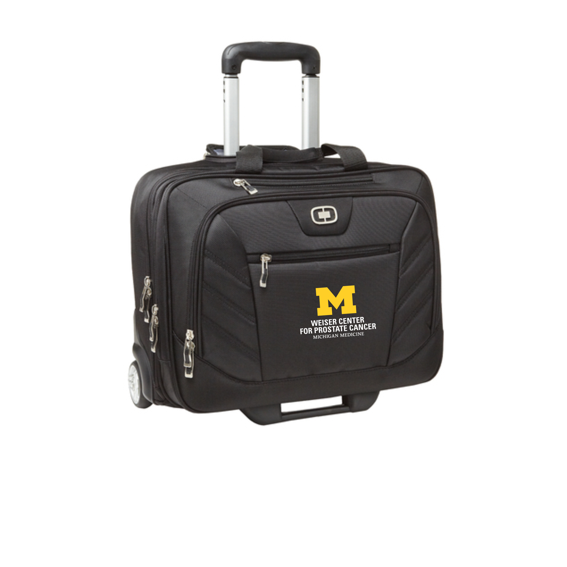The wheeled Lucin has front business and rear overnight areas. The Weiser Center logo is embroidered on the back